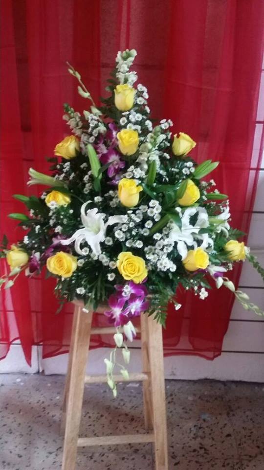 016 Arreglo Funeral Esquina elaborado en Rosas, Orquideas, Lirios Casa Blanca