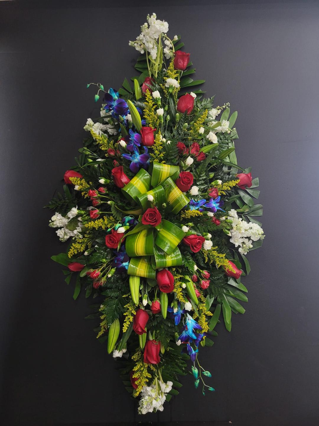014 Arreglo Funeral Esquina trabajado en Rosas y Orquideas